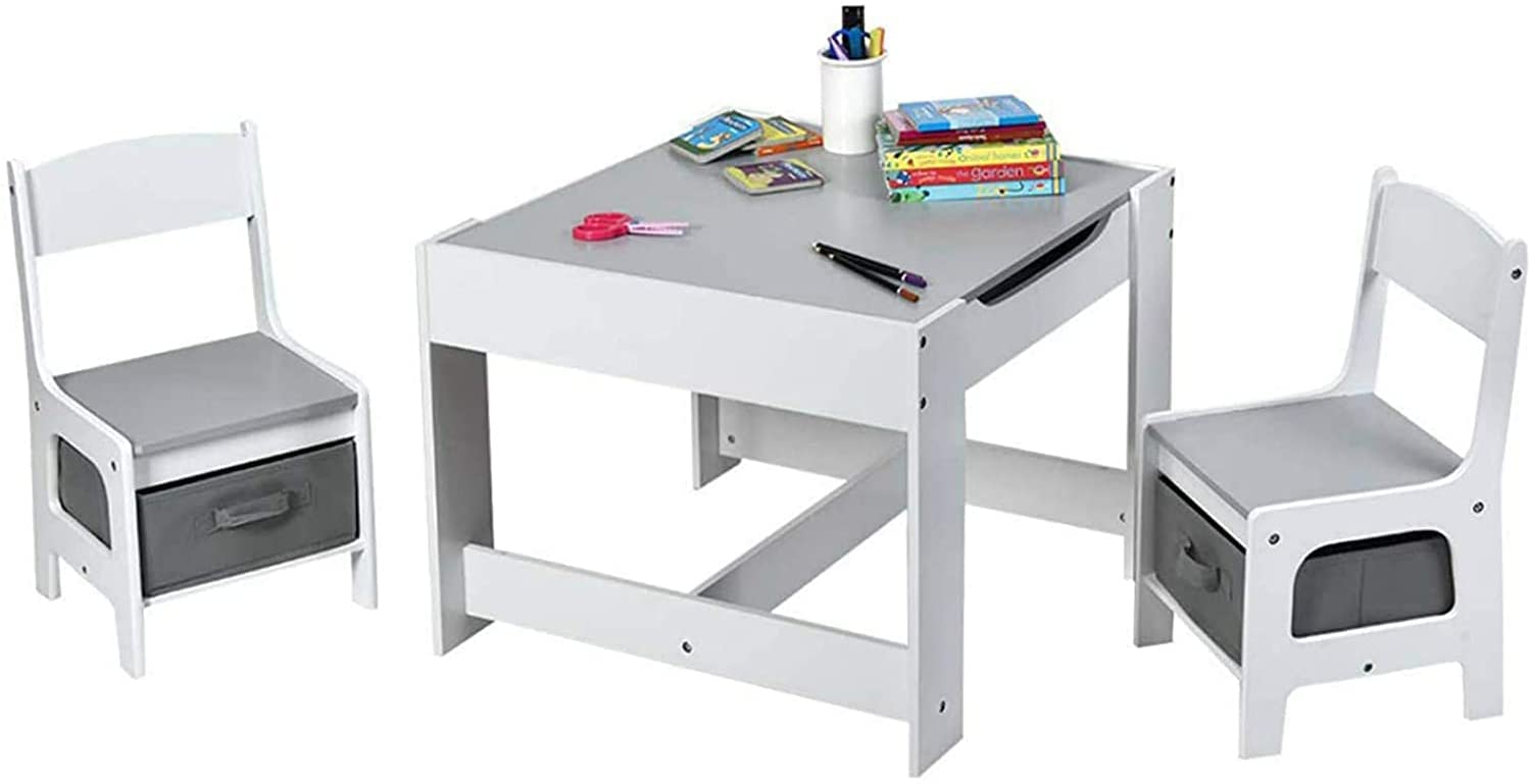 One side of the tabletop is blackboard while the other is whiteboard. Children can draw and write with chalk or gel pen. These boards also can be used for teaching.