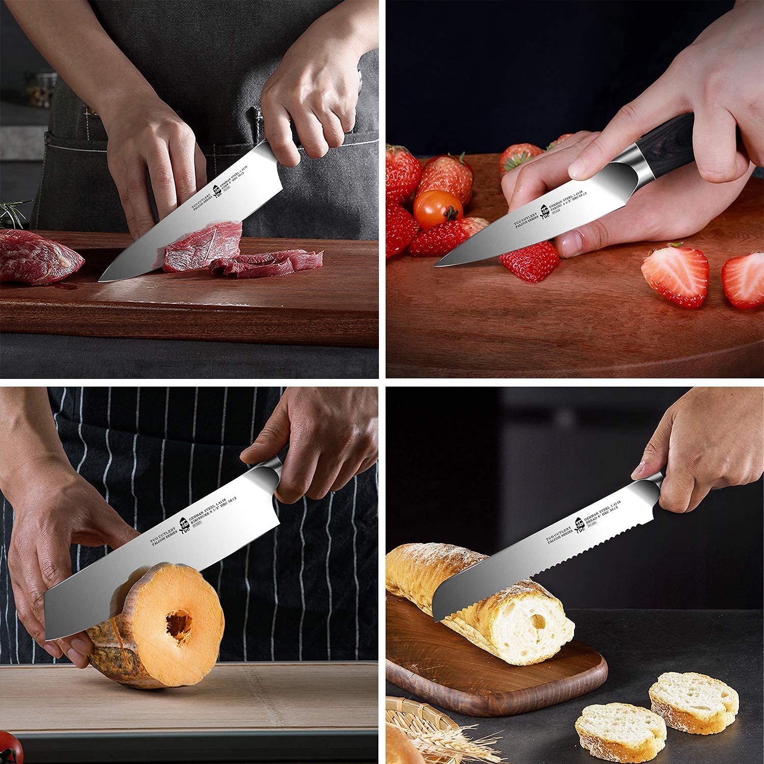 The Falcon 17 pcs knife set includes all the necessary knives in the kitchen, which is an ideal gift for professional chef friends or family members who need to cook. Comes with an exquisite packaging box, making it more suitable for giving away on specific festivals, such as Halloween, Christmas or someone’s birthday.